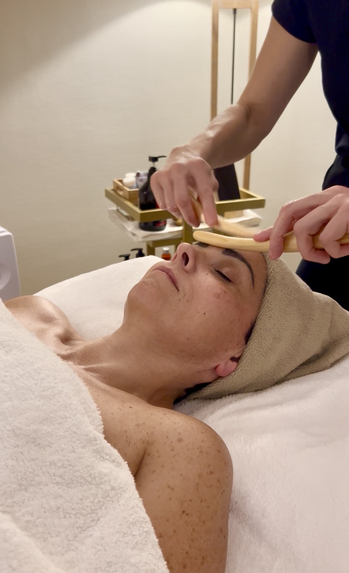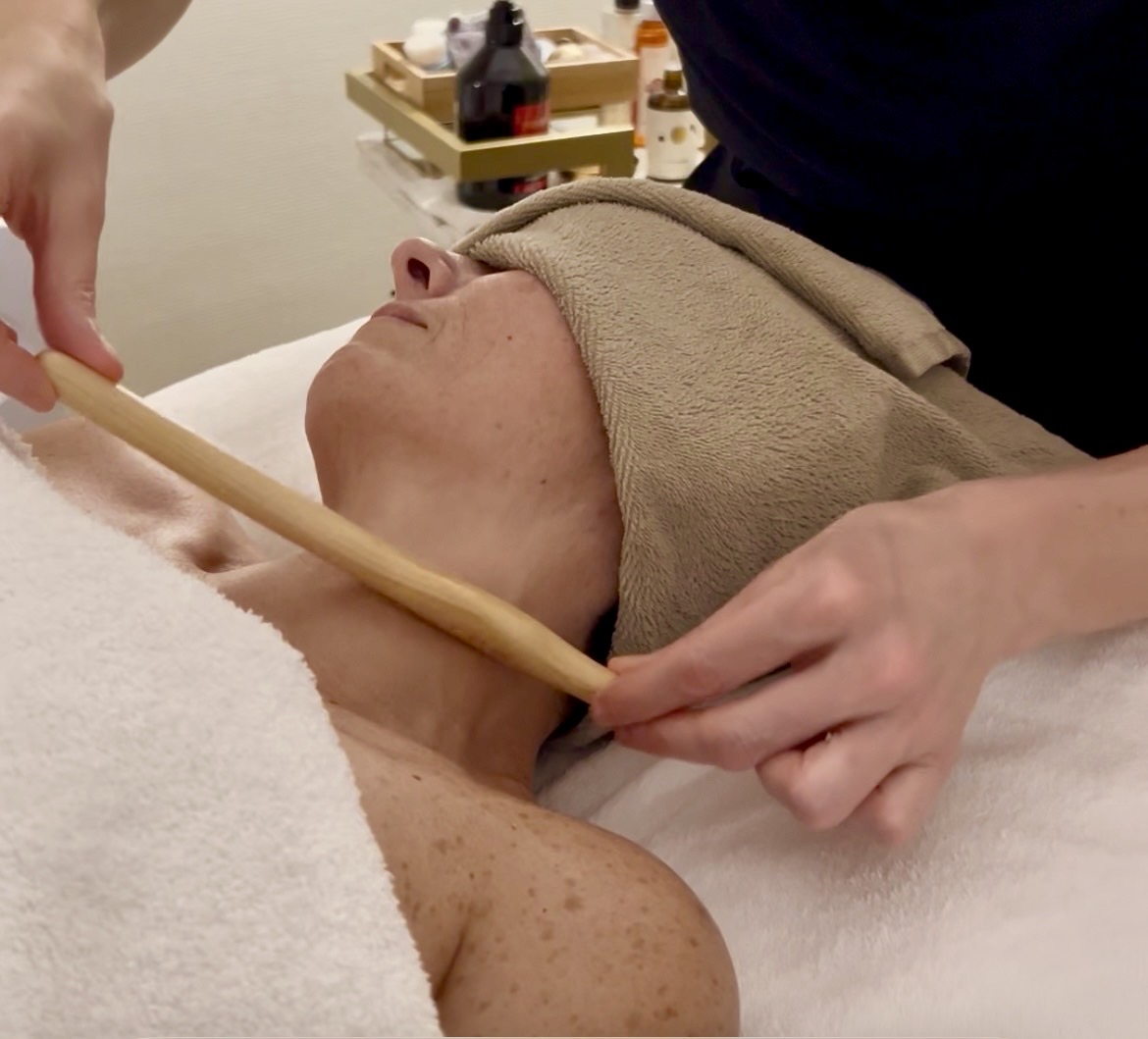 Le soin HinokiBō est un massage complet du visage, cou, décolleté et haut du dos, composé d’une alternance de manœuvres manuelles et de techniques réalisées à l’aide des bâtons de cyprès.